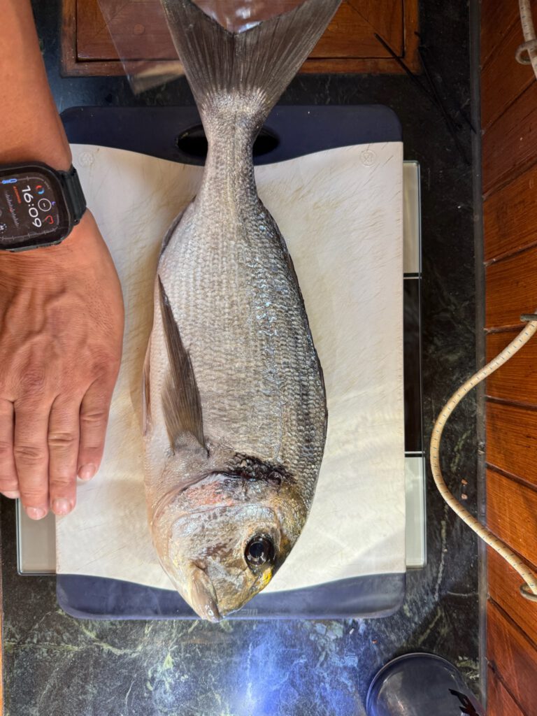 • Angeln & Netzwerken: dabei lernte er u. a. Irini aus dem Marina-Office und ihre Freundin Katharina kennen. Man tauscht sich aus, lacht, lernt – und fĂ€ngt ganz nebenbei mal eine 2kg Brasse. Hut ab Alex!