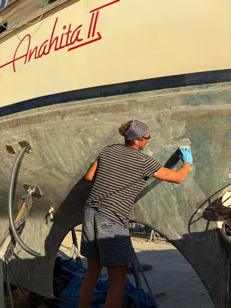 WĂ€hrend sie sich in der Heimat um Familie kĂŒmmerte, blieb Alex auf der Anahita zurĂŒck – mitten im Trockendock auf Leros.