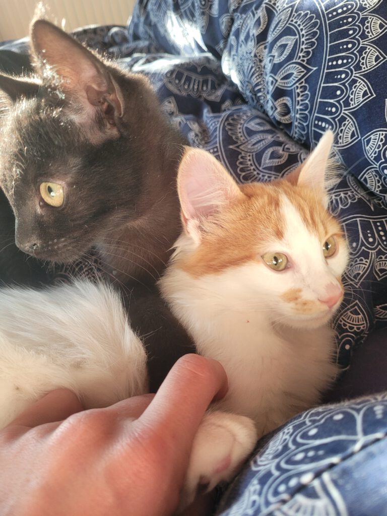 Kalimero lebt inzwischen bei einer liebevollen Familie und wird dort bestens versorgt. Nike hat ihr Zuhause bei Antonias Mama gefunden – und hat dort mit ihrer furchtlosen, neugierigen Art bereits alle um die Pfote gewickelt.